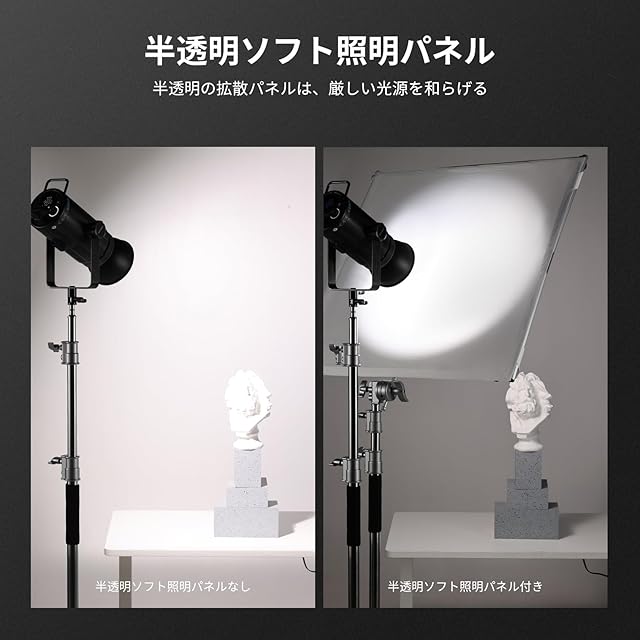 【半透明ソフト照明パネル】半透明の拡散パネルは、過酷な光源を和らげ、光の透過率を向上させ、バランスの取れた均一な出力を作成することができます。