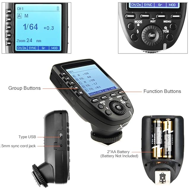 【優れたデザイン、シンプルな操作、軽量でポータブル】大型液晶画面が鮮明に表示され、グループボタン5個と機能ボタン4個を搭載しているため、操作が高速になります。 Type-C USBファームウェアのアップグレード、2.5mm同期インターフェースワイヤレストリガーをサポートします。 Xproの正味重量は約80gで、軽量で持ち運びに便利です。