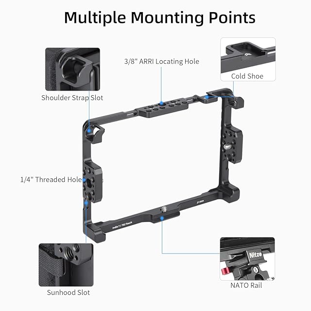 【アルミ合金素材】SmallHD Cine 7 / Indie 7 / 702 Touchモニター用のNitzeケージは、陽極酸化アルミニウム合金製で、軽量で耐久性があります。