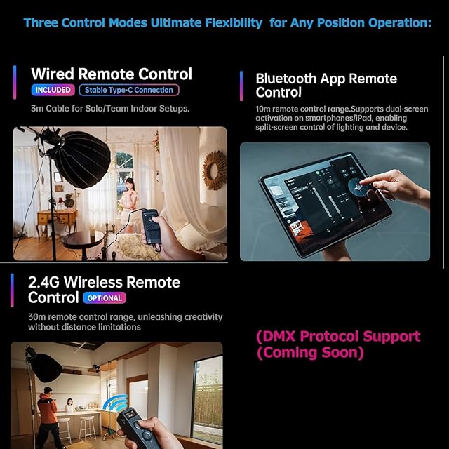 ABCDメモリーボタン – シーン切替を即座に 撮影シーンごとの照明位置を記憶。ワンクリックで保存位置を再現可能。複数のLightGoを使用する場合、個別IDを設定して正確に制御。複雑なセットアップでもスムーズに運用可能。