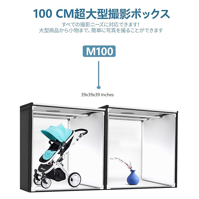 【プロな大型撮影ボックス】 104㎝の大きな撮影ボックスは、クリスマスツリー、ベビーカー、掃除機、トランクなど大きな物品の写真を撮るにも、子供たちの楽しい写真を撮ることもできます。十分なスペースがあるから、ほとんどの撮影照明ニーズを満たすために、自宅で一味違った写真を写し出すことができます。折りたたみ式なので、組み立てが簡単です。収納や持ち運びにも便利です。