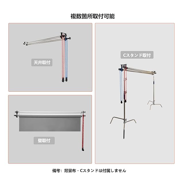 万能な取り付け:壁、天井、またはCスタンドの取り付けに対応し、写真スタジオに柔軟なセットアップオプションを提供します。