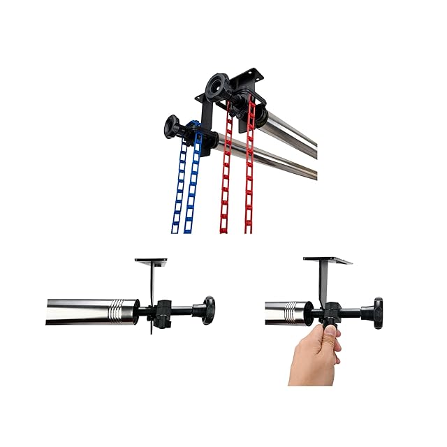 デュアルローラーシステム:青と赤のチェーンが付いた2つの別々のローラーが特徴で、複数の背景をスムーズに独立して操作できます。