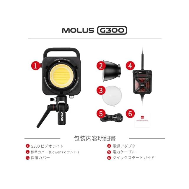 商品名:[公式旗艦店] ZHIYUN MOLUS G300 300WLEDビデオライト 最大500Wの撮影用ライト バイカラー2700K-6500K 65100Lux@1M 超軽量小型ボディBowensマウント[一年メーカー」
