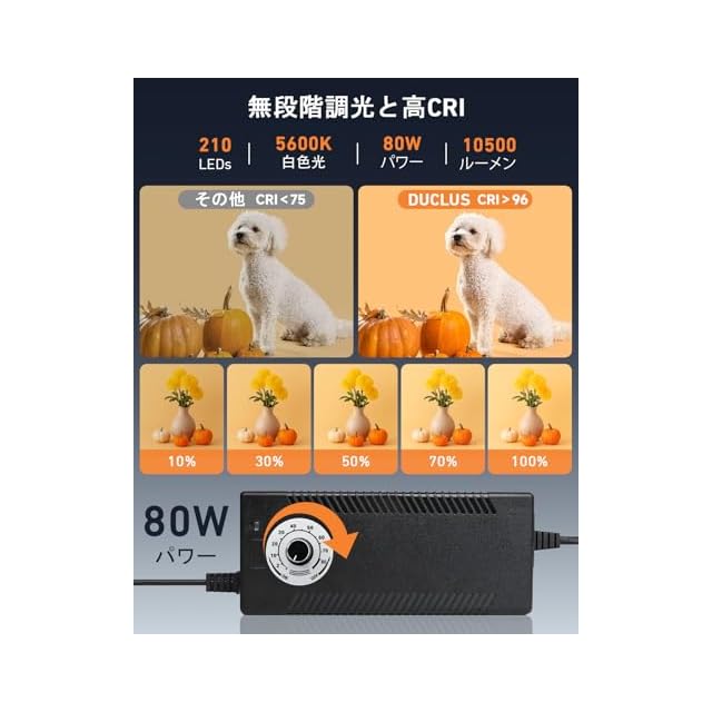 【無段階調光と色再現】DUCLUS写真撮影ボックスは0-100%の明るさ調節をサポートし、調光ボタンを回転させることで、光の強さを正確にコントロールすることができます。CRI>96の高演色性で、5600Kの自然な白色光は、金属の反射、布地の質感、食べ物の色などのディテールを正確に再現し、あらゆるショットにプロ級のクオリティを与えます。