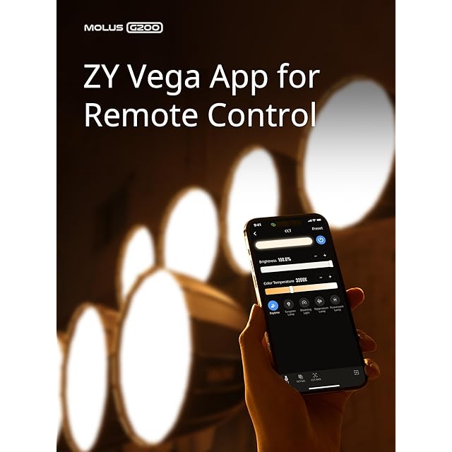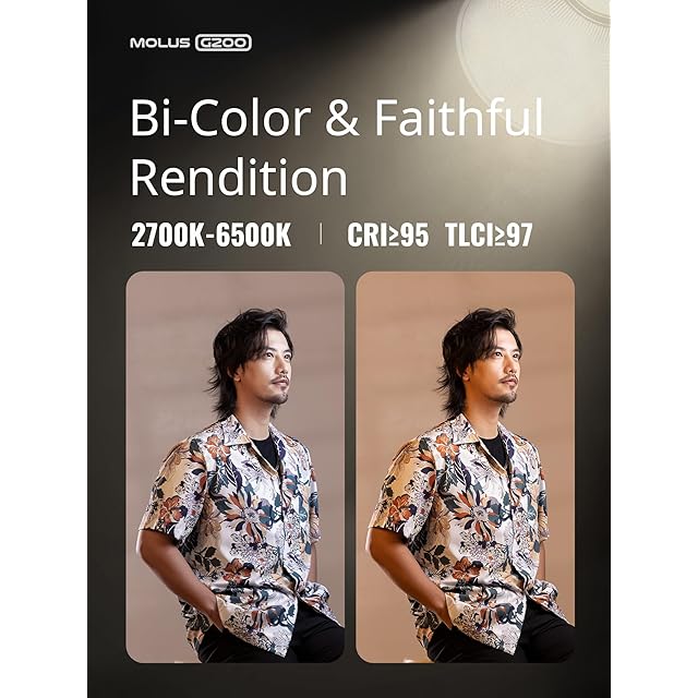 【わずか67.5mmの厚さ】MOLUS 200Wビデオライトは、洗練されたコンパクトなデザインで、精巧な冷却システムを備えたCOBライトが搭載されており、{手のひらにすっぽり収まります}。