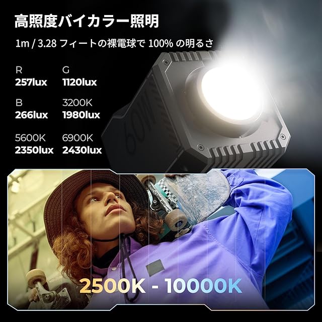 【プロフェッショナル機能】新しくアップグレードされた RC60C には、調整可能な G/M 値、カラー ジェル モード、HSI、RGBCW、カラー ピッキングなどの機能があり、プロフェッショナル ユーザーの正確な色調整と強化のニーズを満たします。