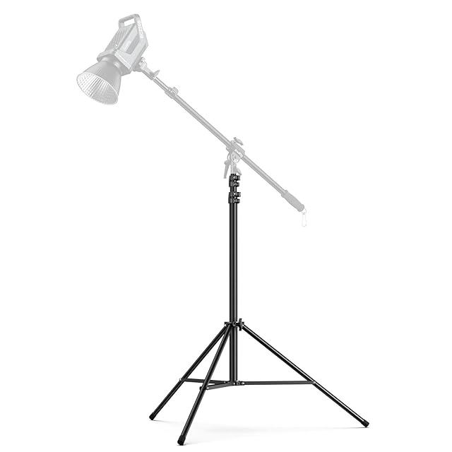 【ソリッド素材】主にアルミ合金と鉄でできた、頑丈で安定した写真用ライトスタンド。 ベースの鉄製サポートバーは、厚さ2.66mm、幅15mmで、滑り止めと耐摩耗性のナイロンフットを備え、丈夫で耐久性があり、脚間の距離は最大で1.2mまで伸び、安定性が向上しています。 最大耐荷重5kg/11lb。