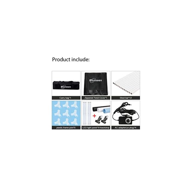 【キット内容とアフターサービス】1*100cm撮影ボックス本体、4列x96個LEDライト、2*電源アダプター、3*背景布(黒、白、青)、1枚柔光布、1*収納ケース。本製品が故障した場合、いつでもお気軽にお問い合わせください。弊社は24時以内に返事します。