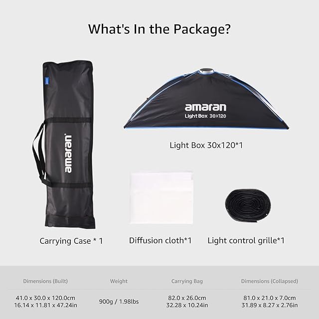 amaran Light Box 30x120 | 30x120cm狭長矩形ソフトボックス | Bowensマウント対応 | 広い照射面積をカバー | 1秒で設置、携帯用バッグ付属