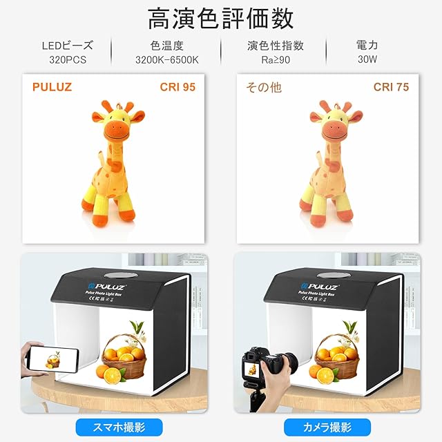 PULUZ 撮影ボックス 42×42×32cm 撮影ブース 折り畳み 物撮りセット 320個LEDビーズ/超高輝度/3色温度/無段階調光/4色PVC背景/ディフューザー付き 卓上写真撮影キット 物撮り用ボックス プラモデル 撮影ブース 携帯便利&組立簡単&収納便利 自宅撮影台 撮影用アイテム(42×42×32cm)