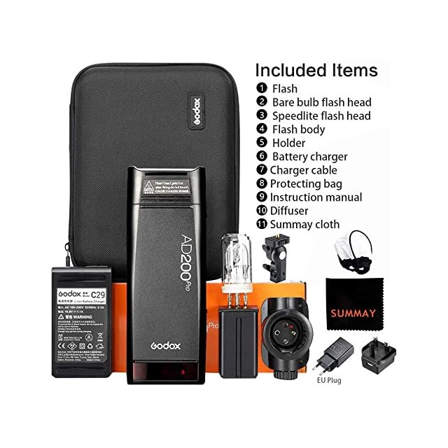 【互換性】Godox AD200Proは、Nikon、Canon、Sony、Fujifilm、Olympus、PanasonicおよびPentax TTLをサポートして対応しています。 マスター&スレーブ機能により、AD200ProはGodox TTLカメラフラッシュ、TTL屋外フラッシュなどと組み合わせて使用できます。