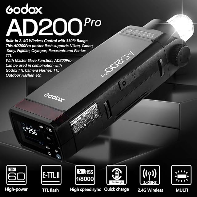 【Godox Xシステム伝送】光と安定した出力を提供するGodox Xシステム。 Godox Xシステムを使用する場合、AD200proはCanon E-TTL、Nikon i-TTL、Sony TTLなどに対応しています。