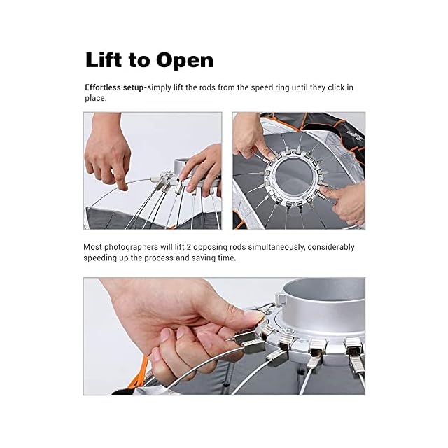 16本のロッドを使用して32点の軸を作成し、完全に円形のキャッチライトを生成する非常に丸いソフトボックスを可能にします。