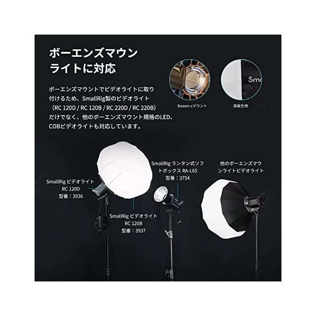 SmallRig RA-L65 ランタン ソフトボックス 65cm 灯篭型 円形ソフトボックス Bowensマウントライト用 スモールリグ RC120D/120B COB LEDビデオライト用 折り畳み式 ポートレート 室内撮影 撮影補助器材 照明・撮影ライト用 3754
