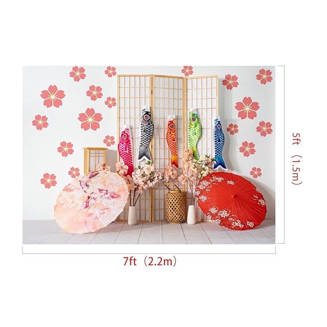 Kate 2.2x1.5m 七五三 背景布 さくら 鯉のぼり 和傘 写真 背景 スタジオ 撮影用 道具 カスタマイズ可能な背景