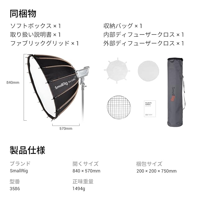 SmallRig ソフトボックス RA-D85 Φ85cm ライトボックス ストロボ ライトドーム 反射型 折りたたみ式 ポートレート撮影 Bowen-Sマウントライト用 スタジオ LEDビデオライト スピードライト撮影などに適用 スモールリグ Parabolic Softbox - 3586