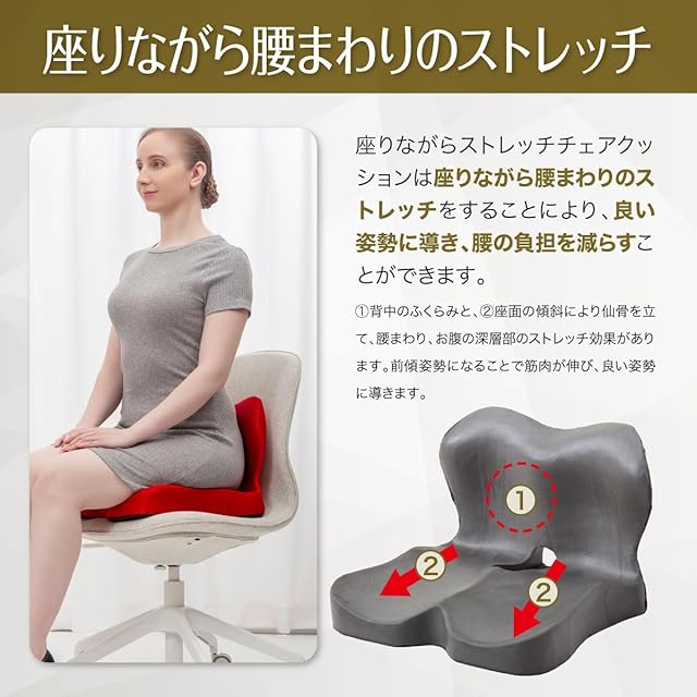 座りながらストレッチができ、お腹の筋肉を伸ばして、姿勢を良く保ちます。