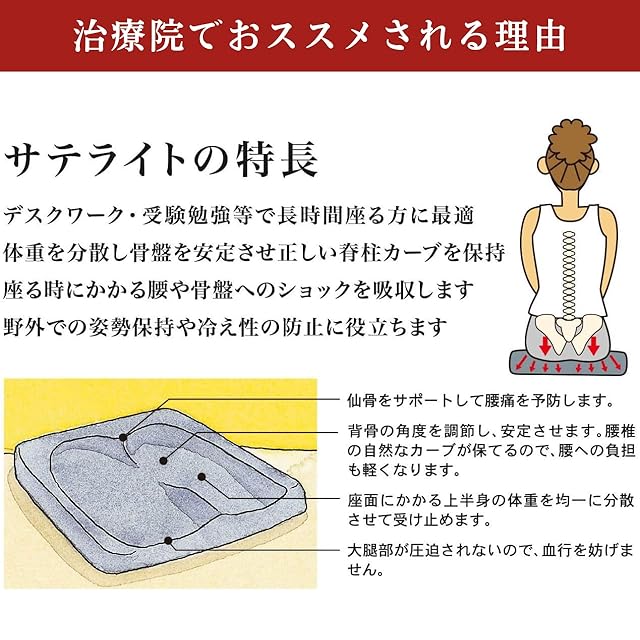 BODYLINE サテライト 骨盤サポート 座布団 クッション チェアパッド 在宅 デスクワーク 妊婦 姿勢サポート ざぶとん ランバーサポート 腰サポート (グレー)