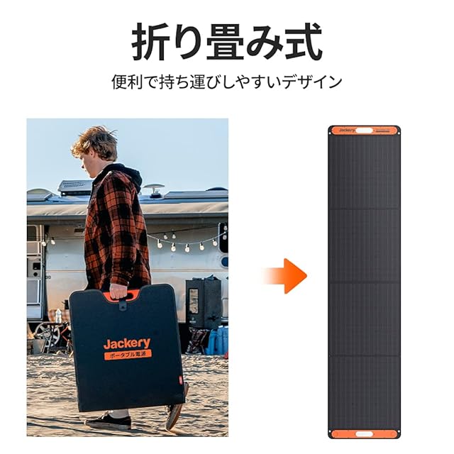 商品名:Jackery SolarSaga 200 ソーラーパネル SPL201 折り畳み 持ち運び簡単 省スペース 収納 単体でスマホやタブレット充電可能 高変換効率 薄型 単結晶 軽量 コンパクト 防災 非常用電源 IP67 防水 防塵 DC出力 DCポータブル電源充電器 ジャクリ ポータブル電源 2000/1500/1000/708/400/240用