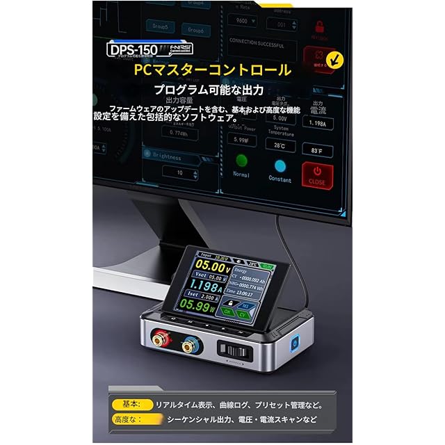 1. モデル:DPS-150 2. 入力電圧:DC5.0V~32V 3. 入力電流:100mA~5A 4. 入力方法 1:PD 急速充電器 5. 入力方法 2:QC 急速充電器 6. 入力方法 3:パワーバンク 7. 入力方法 4:DC 電源アダプター 8. 出力電圧:0~30V 9. 出力電流:0~5A 10. 出力電力:0~150W 11. 動作環境:0℃~40℃ 12. 負荷レギュレーション:0.49% 13. 全負荷効率:96.30% 14. 画面:2.8 インチ (320*240) 15. 重量:約 178g 16. 寸法:106×76×28mm 17. 過電圧保護:サポート 18. 過電流保護:サポート 19. 低電圧保護:サポート 20. 過電力保護:サポート 21. 過熱保護:サポート 22. 逆入力保護:サポート 23. 逆出力保護:サポート 24. 短絡保護:サポート 25. ファームウェアアップグレード:サポート 26. 上位コンピュータソフトウェア:サポート