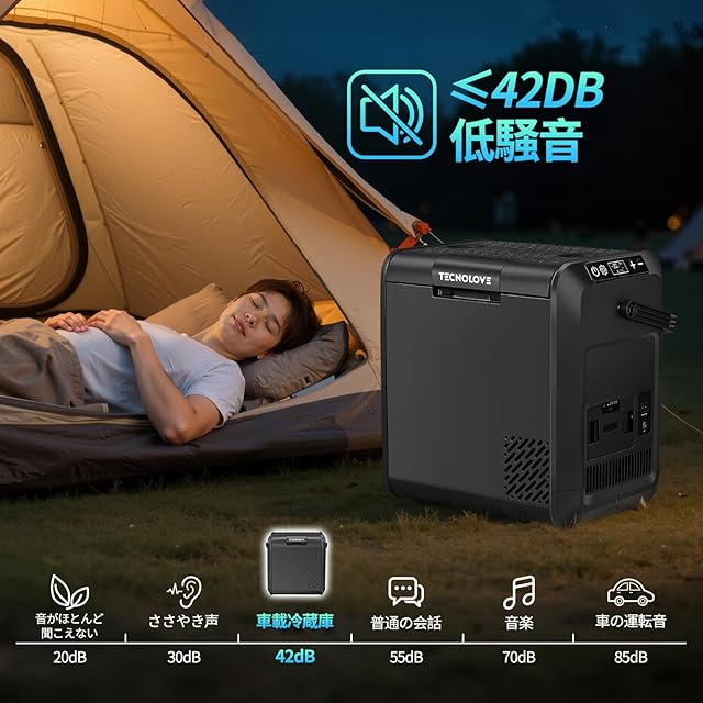 両開き&着脱式ドア|頑丈構造&静音設計。ドアは左右どちらにも開閉可能で、取り付け位置や利き手に合わせて調整可能。強化された外装とフタは耐荷重100kg以上、優れた断熱性能を実現。防振構造で45°の傾斜でも安定動作。底部に排水栓付きで清掃も簡単。動作音はわずか42dBで静か。LEDタッチパネルで温度(10℃~-20℃)を調整可能。ドアを開けると庫内LEDライトが自動点灯。ECOモードでは消費電力32W以下、MAXモードでも低消費電力。磁力設計とEPDM製シーリングで保冷時間を延長。