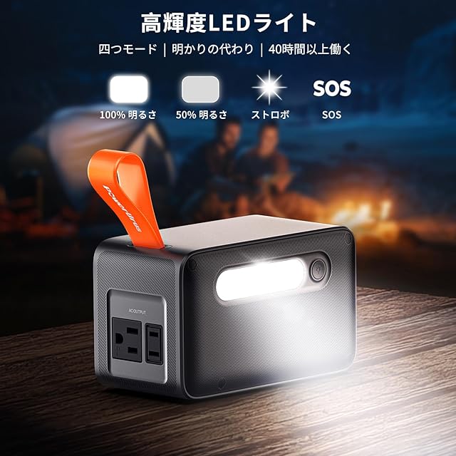 コンパクトながら実用性抜群のPowerUrusポータブル電源は、小型・軽量でありながらAC・DC・USB・Type-Cを含む6種類の出力ポートを搭載。スマートフォンやタブレットはもちろん、ノートパソコン、小型冷蔵庫、LEDランタンなど多彩なデバイスに対応可能です。安全性に優れたリン酸鉄リチウム電池(LiFePO4)を採用し、長寿命・高耐久・高温耐性を実現。自宅やアウトドア、車中泊、災害時のバックアップ電源としても信頼できます。さらに、ソーラーパネルや車載充電に対応し、電源がない環境でも安心。飛行機にも持ち込み可能な容量(89.6Wh)で、国内外の旅行や出張にも最適です。内蔵のLEDライトは停電時の照明や、夜間のキャンプ活動にも大活躍。