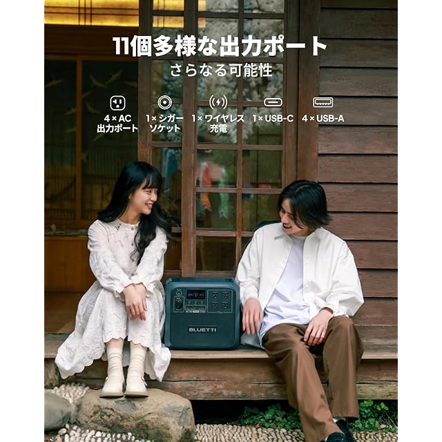 【新世代電力リフト機能】AC180は最新版のリフト機能を搭載しています。この機能では、電化製品の定格電圧を下げることによって、アウトドアや停電時に、電気ポットやドライヤーなど定格消費電力2700W以下の電熱線(電阻)搭載の家電でも使用可能です。家庭用AC出力ポート (100V/1800W 純正弦波)*4、USB-A*4、USB-C*1(100W)、ワイヤレス充電*1、シガーソケット出力*1を含む11出力ポートから同時充電を行えます。