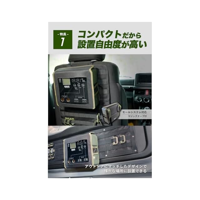 足元に重いバッテリーを置き、操作パネル(本体)のみを卓上などの使いやすい箇所に設置できる。アウトドアシーンの電源確保に。
