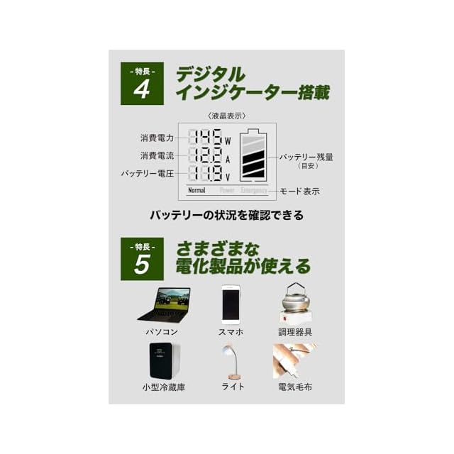 災害時に便利な【Emergencyモード】、より大きな電気容量を取り出せる【Powerモード】付。