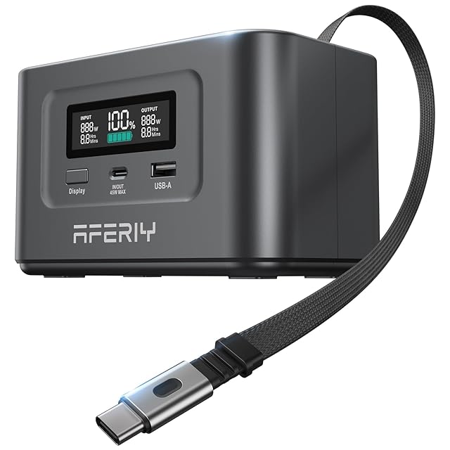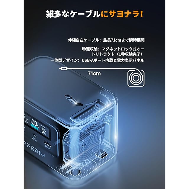 AFERIY 145W ポータブル電源 99.2Wh/31000mAh 伸縮式Type-Cケーブル内蔵 ポータブルバッテリー 小型 飛行機持ち込み可 リン酸鉄リチウム 1.5時間フル充電 PD3.0対応双方向USB-C(45W・100W)急速充電 USB-Aポート搭載 モバイルバッテリー 家庭用 アウトドア用 ダークグレー