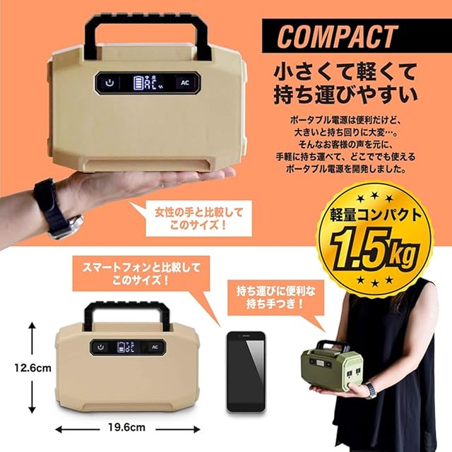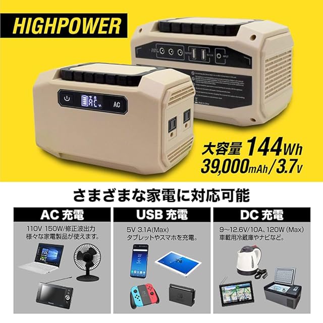ポータブル電源 144W カーキ ポータブルバッテリー 小型 軽量 防災グッズ 停電対策 停電グッズ iPhone Android スマホ 車中泊 アウトドア キャンプ 家庭用蓄電池 蓄電池 バッテリー (ベージュ)