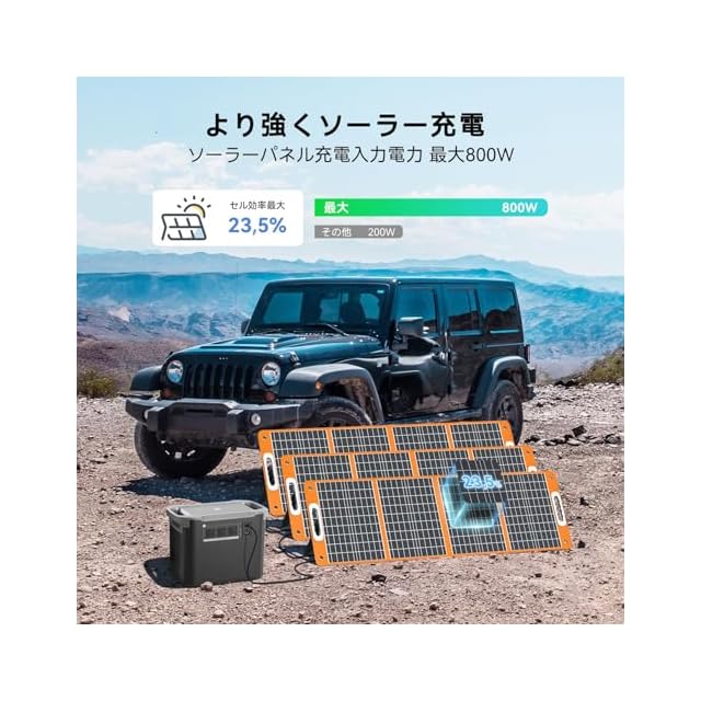 【大容量ながら1.8時間で満充電可能】大容量ながら双方向インバーターを搭載しており、AC1600Wの高速充電を実現しただけでなく、重いアダプターを持ち運ぶ必要はなく、AC充電ケーブル1本で約90分で80%まで急速充電でき、2時間以内にフル充電が可能です。コンセントからの充電だけではなくソーラーパネルやシガーソケットからも充電が可能です。最大800Wのソーラー入力により、約3時間でこのポータブルバッテリーをフル充電できます。緊急用や突然の台風に備える時なども、急速充電で短時間で電気を確保することができます。
