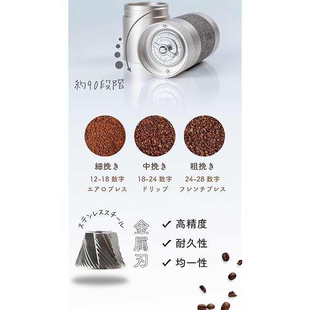製品:各パーツや金属刃は 1Zpresso チームにより緻密に設計され、 グラインド時には高い安定性を実現。使い続けても緩まないように設計されています。 ご家庭での使用が想定されているため、合計約100~200kgのコーヒー豆を挽くことができます。 製品の期間は1年。安心のカスタマーサポートを受けることが可能です。