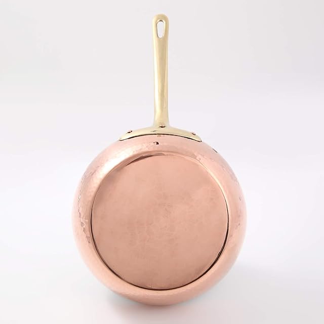 プロの料理人たちが愛用する浅草 銅銀銅器店の銅製のフライパン(24cm、深型)です。熱伝導率が良い銅製なので、食材に均等に熱が伝わり、食材にしっかりまんべんなく熱が行き届くので美味しい料理に仕上がります。
