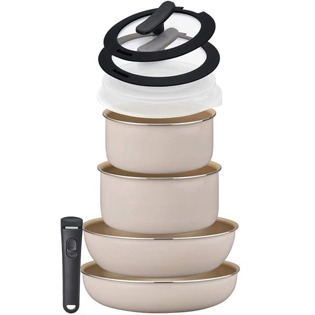 商品内容:サイズ:フライパン/26cm、深型フライパン/26cm、ポット/20cm・18cm、ガラス蓋(シリコンリングつき)/20cm・18cm、ポット用蓋(プラスチック)/20cm・18cm、専用ハンドル