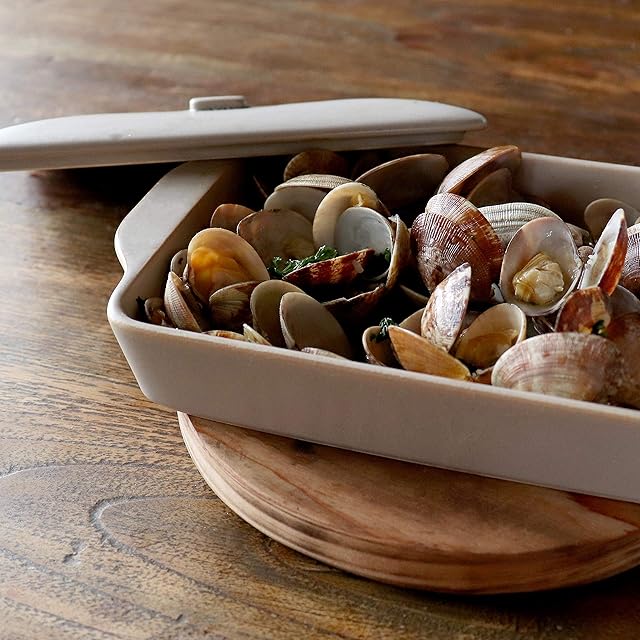焼き物で有名な岐阜県土岐市で丁寧に製造された日本製。 フラット、ウエーブの2種。ウォームグレー、ダークグレーの2色。 IHでのご使用はできません。 本体 W216×D143×H33 蓋+本体 W216×D147×H55