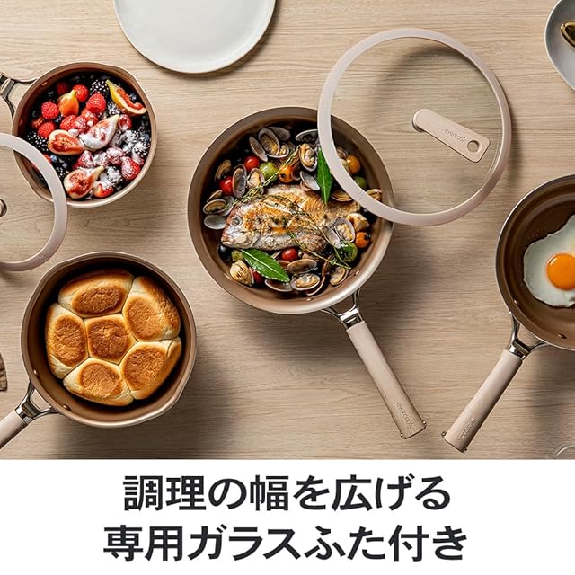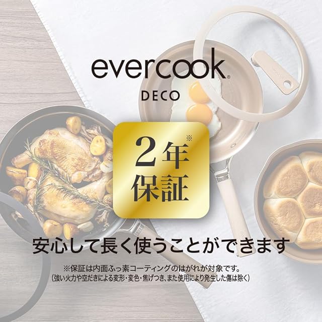 エバークック DECO マルチパン 18㎝ ガラスふた付き オール熱源対応(IH対応) 【2年】 こげつきにくいフライパン ベージュ ドウシシャ