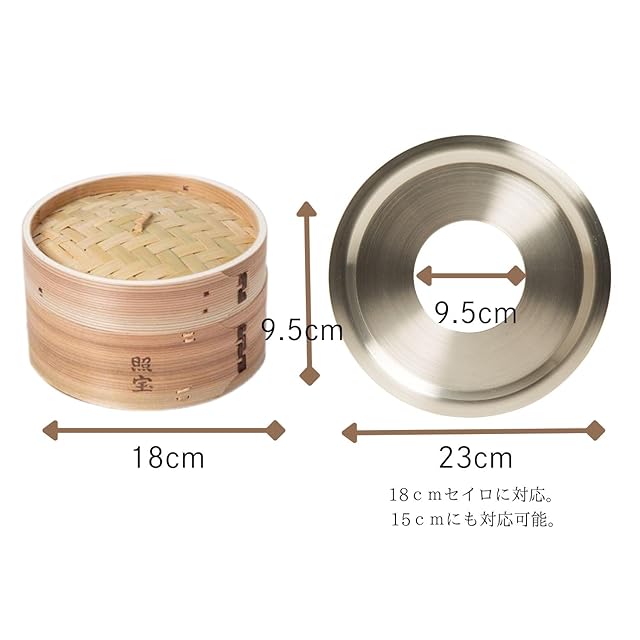 【照宝】せいろ・【中村銅器製作所】日本製アルミ蒸し板セット (竹1段, 18cm)