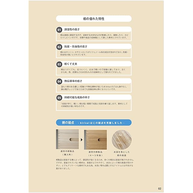 素材・材質:本体/天然木桐材、扉/天然木桐材、表面加工/自然塗料