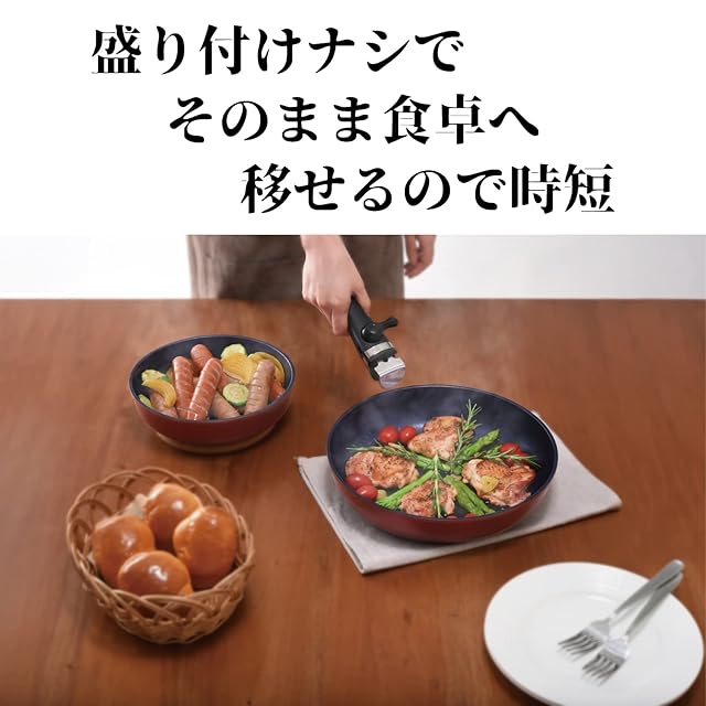 【ベルフィーナの着脱ハンドルタイプ】ハンドルが外せるから、食卓にそのまま出せ、・オーブン調理にも対応している。取っ手が外せるのでコンパクトに収納いただける