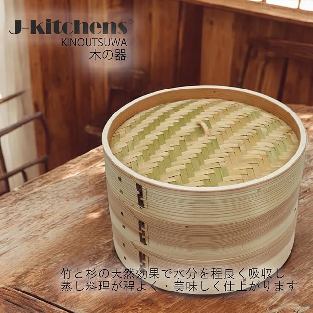 商品名:J-kitchens せいろ 本格 中華 2段 径30x高さ21cm 木 & 竹 製 蒸し器 Current model