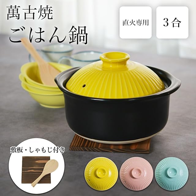 伝統本舗 KIKKA ご飯鍋 イエロー 3合炊き 敷板 しゃもじ付き ごはん鍋 ごはん釜 菊花 万古焼 萬古焼 ばんこ焼 四日市 土鍋ご飯 炊飯土鍋 日本製 結婚 出産 内祝い 新築祝い 新生活 引き出物 プレゼント den0290
