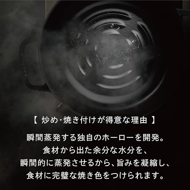 バーミキュラ鍋の最大の特徴「究極の無水調理性能」はそのままに、「フライパンの炒め性能と軽さ」が加わり、料理のバリエーション・調理スピード・使いやすさが革新的に進化しました。