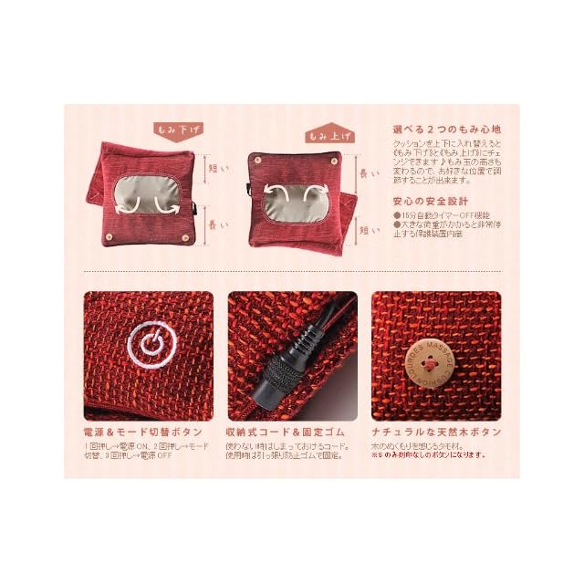商品名:ルルド マッサージクッション コードレス AX-HL248 ラズベリーピンク