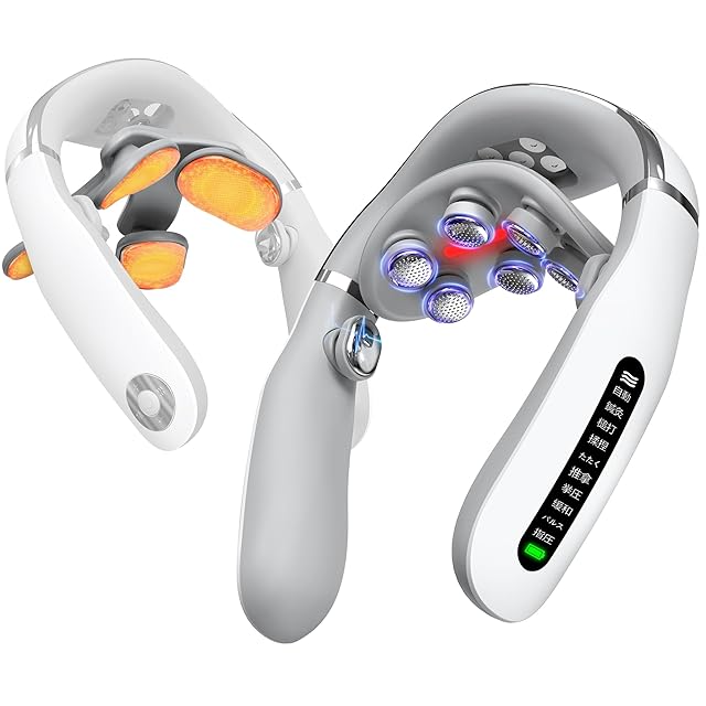 商品名:Juliyas ネックケア 首 リラクゼーション器 【次世代 首/肩 両対応】業界初 マグネット式 2種交換ヘッド 深く広く EMS&TENS 振動 温熱 メモリー機能 静音モード 10種類モード 19段階強度 1200mAh 日本語音声ガイド 人間工学設計 Type-C充電式 軽量 ネックリリラックス 父の日 母の日 敬老の日 誕生日プレゼント 男女兼用 日本語説明書同梱