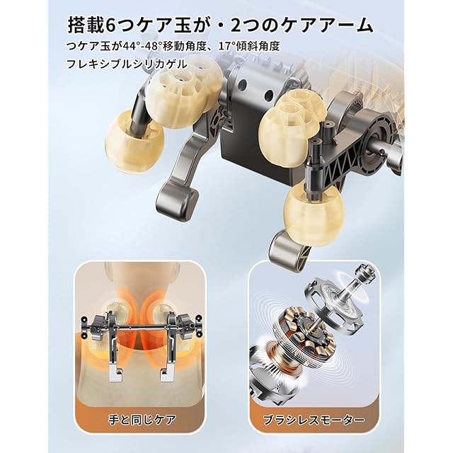 【6つケア玉が・2つのケアアーム】本製品のケアヘッドは高品質のシリコン素材を採用して、質感を失うことなく適度な重量です。より快適な6つのケア玉と2つのケアアーム。全身をリラックスできる道具でもあります。仕事で椅子に座ったり、リビングルームでテレビを見たり、ソファに横たわってケアするのに非常に便利です。