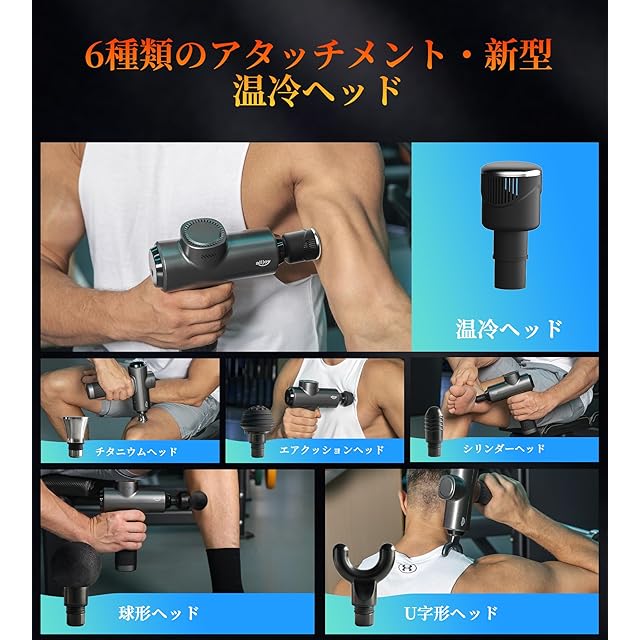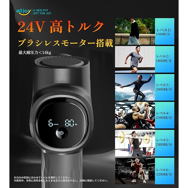 商品名:ALLJOY プロ級 筋膜リリースガン 強力 14mm 振幅 温冷機能付き ハンディガン 最速3200回/分 ハイパワー 最大耐圧力14kg フィットネス愛好者向け 深層深部までアプローチ 6アタッチメント付き Type-C充電 大容量バッテリー 180日の付き