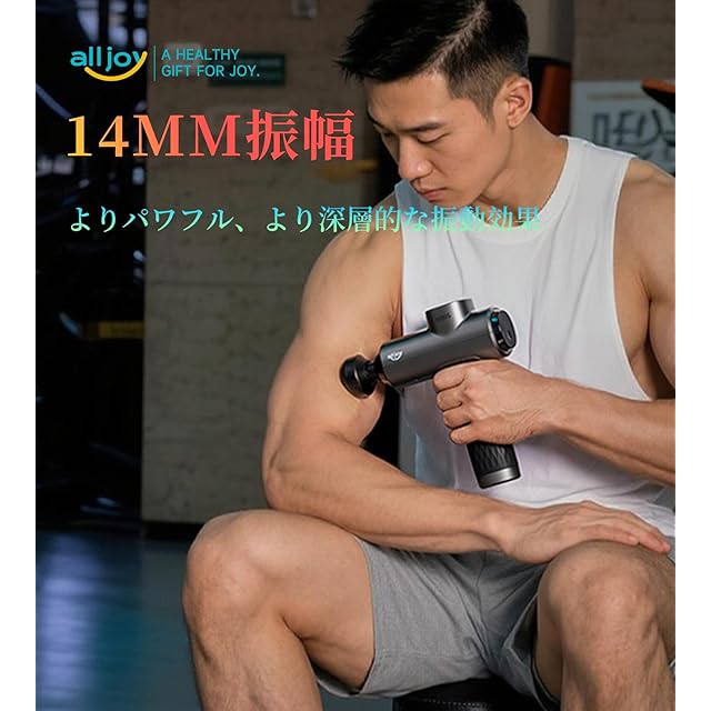 【ALLJOY プロ級筋膜リリースガン・オススメPOINT.01】業界トップグラスに挑戦!筋肉の深層部まで刺激する14mmのストローク、どんな深いコリにしっかりアプローチ!ストローク=パワフルさ 。振幅14mmの強力ハンディガンは凝りや痛みの改善から、運動パフォーマンスの向上まで、特に筋トレ、フィットネスに効果的。