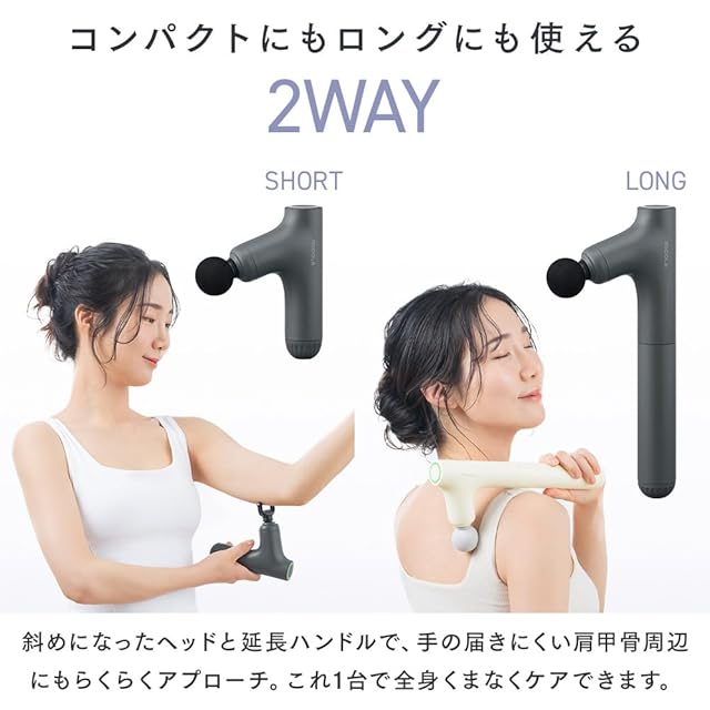 斜めになったヘッドと延長ハンドルで手の届きにくい肩甲骨周辺にもらくらくアプローチ。